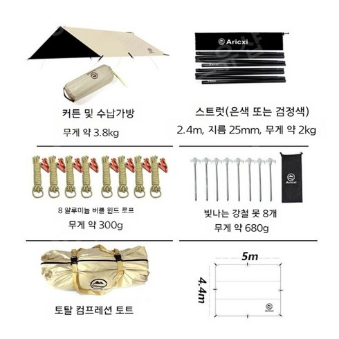 아릭시 타프 헥사 렉타 캠핑, 렉타5x4.4m(폴대미포함)