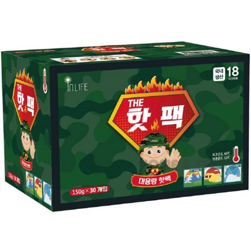 인라이프 대용량 포켓용 핫팩 한파 필수템 150g x 30개 야외 캠핑 손난로 군인핫팩