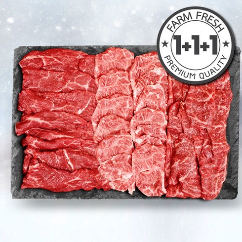 1++ 투뿔 횡성한우 구이 배부른 마블링 모둠 한판 3종 세트 600g